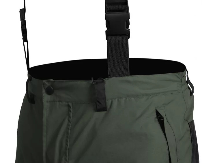 A vízálló nadrág zöld fekete színben, speciális Polyester 320D Taslon anyagból amire még egy PU bevonat ami az jelenti hogy egy nagyobb zápornál (5000mml), és erős szélnél (3000g/m2/24ó) kiválóan véd vízparton vagy a természetben tartózkodásunk során, de megfelelően szellőzik. Állítható kantárjait le lehet cipzározni. A nadrág praktikus vízálló zsebekkel ellátva és övvel ellátva. A nadrág alsó részén 35cm hosszú cipzár kicipzározása után a nadrág szára kiszélesedik, így le tudja venni, vagy felvenni ha a lábán cipő vagy csizma van. A nadrág szárak alsó részén tépőzár található melyek segítségével szűkebbre vehetjük cipőnk körül. Megerősített és párnázott térd- és ülésrésszel ellátva ami hő- és vízszigetelő, biztosítja a kényelmet ha hideg és nedves talajon, ha fűben ül vagy térdel. Tisztításánál ajánljuk, hogy speciális mosószert használjon funkcionális ruházatra és szükség esetén használjon impregnáló anyagot, mely megújítja a víztaszító felületet.